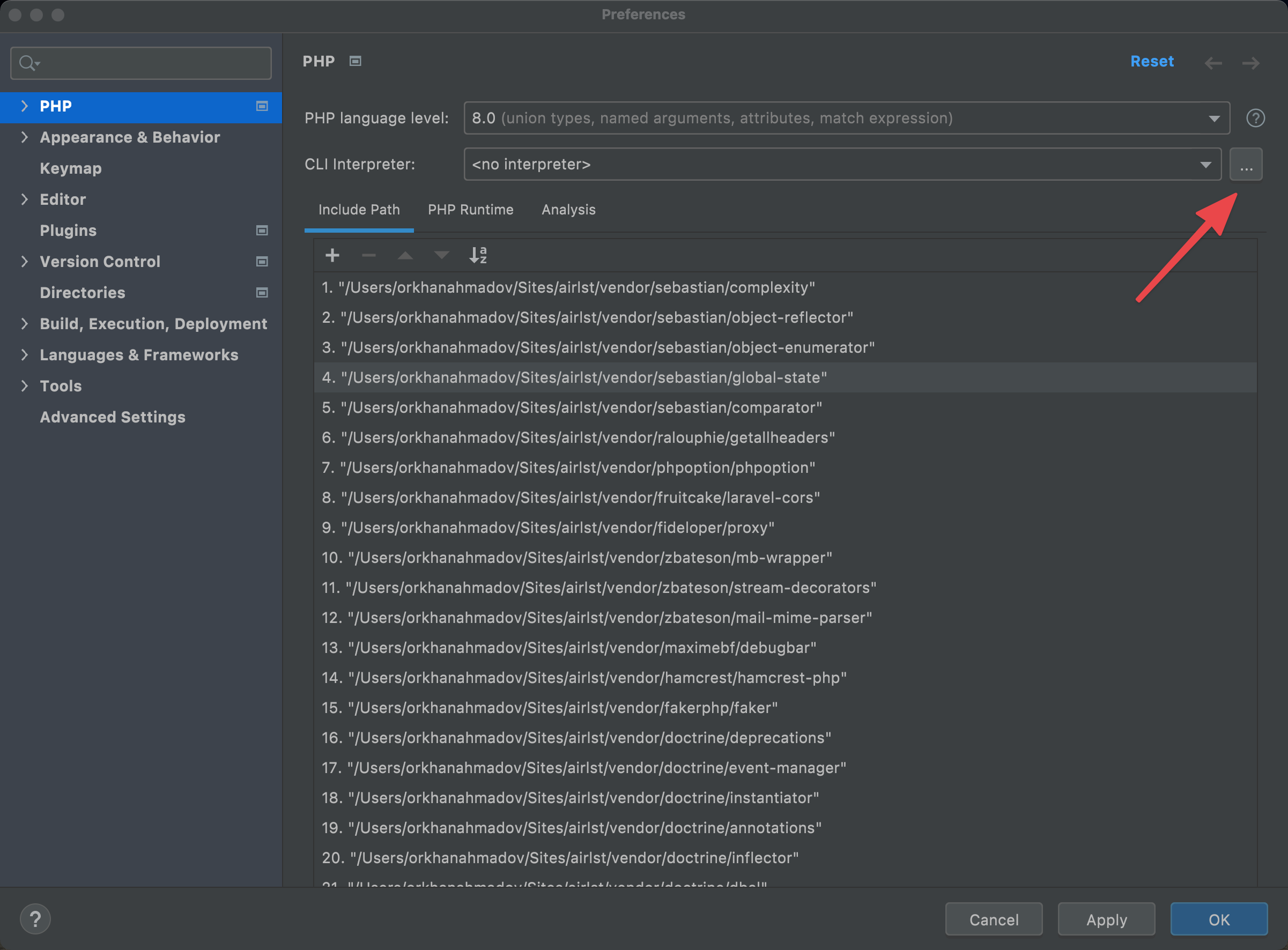 In PHPStorm open Preferences... > PHP, choose ... button on the right side of Cli Interpreter