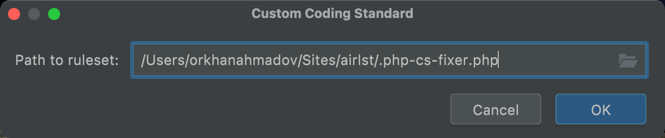Tick PHP CS Fixer validation, on the left side Ruleset choose "Custom" and click ... button