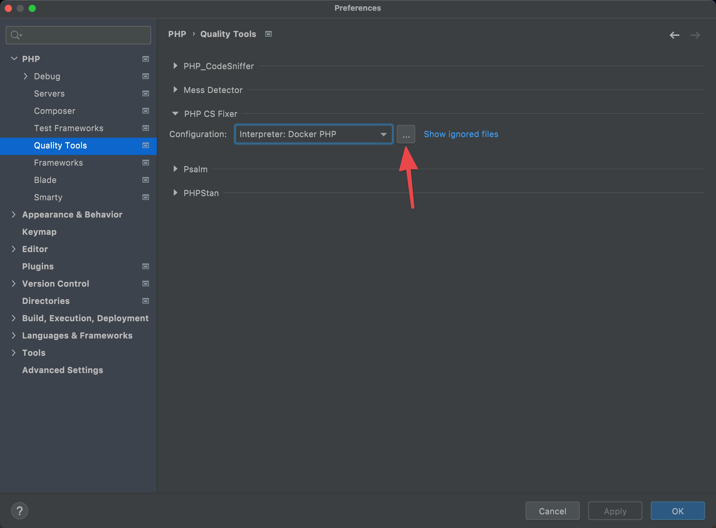 Lastly, make sure you on Preferences... > PHP > Quality tools > PHP CS Fixer > Configuration: correct PHP Interpreter is selected